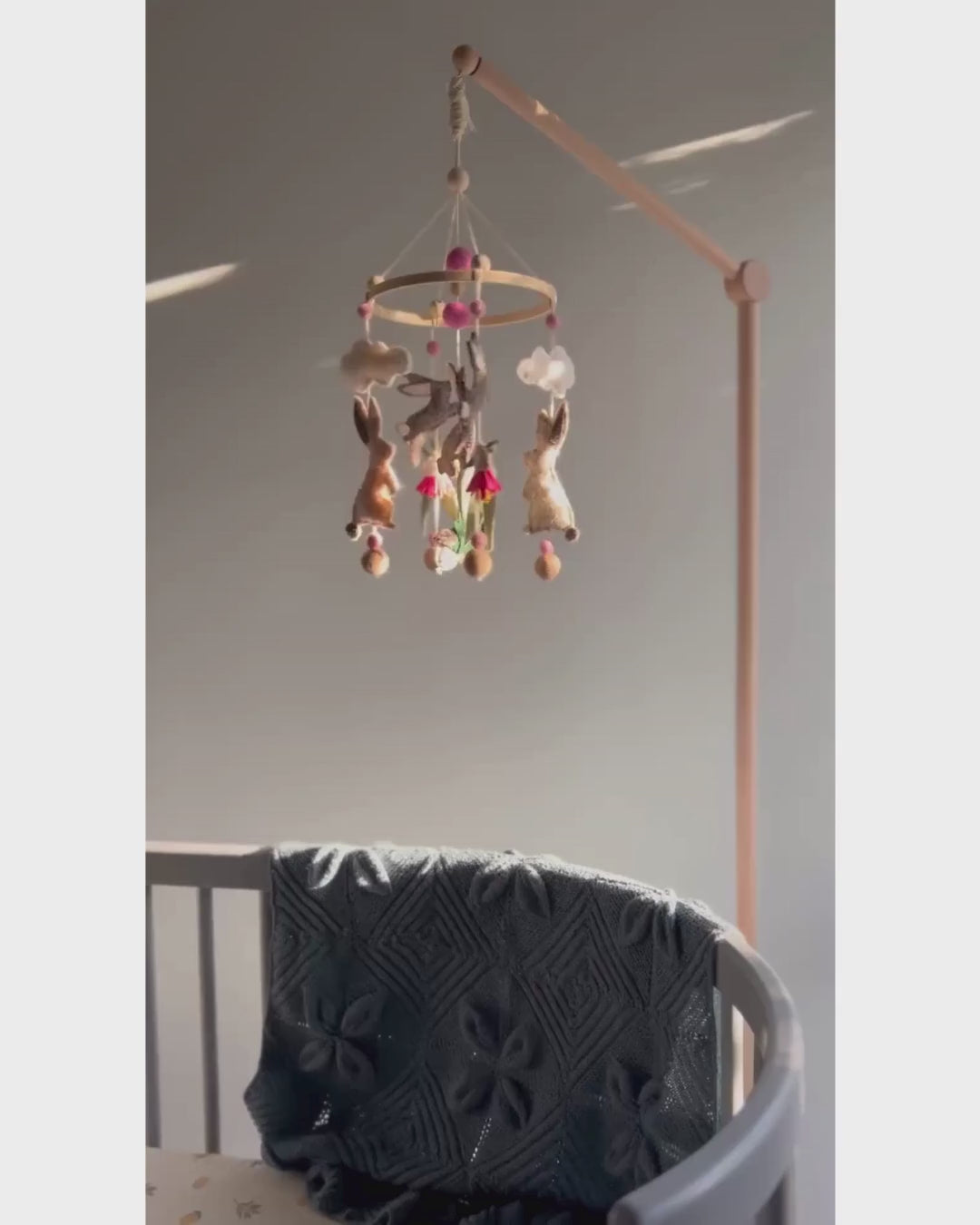 Inspired by dappled light through the trees, the Woodland Bunny collection brings the peaceful charm of the bush indoors. Whether in the muted greens of Forest, the silvery tones of Mist, or the gentle blush of Blossom, each mobile is hand-stitched from pure wool felt and filled with natural wool, crafted slowly to last a lifetime.
